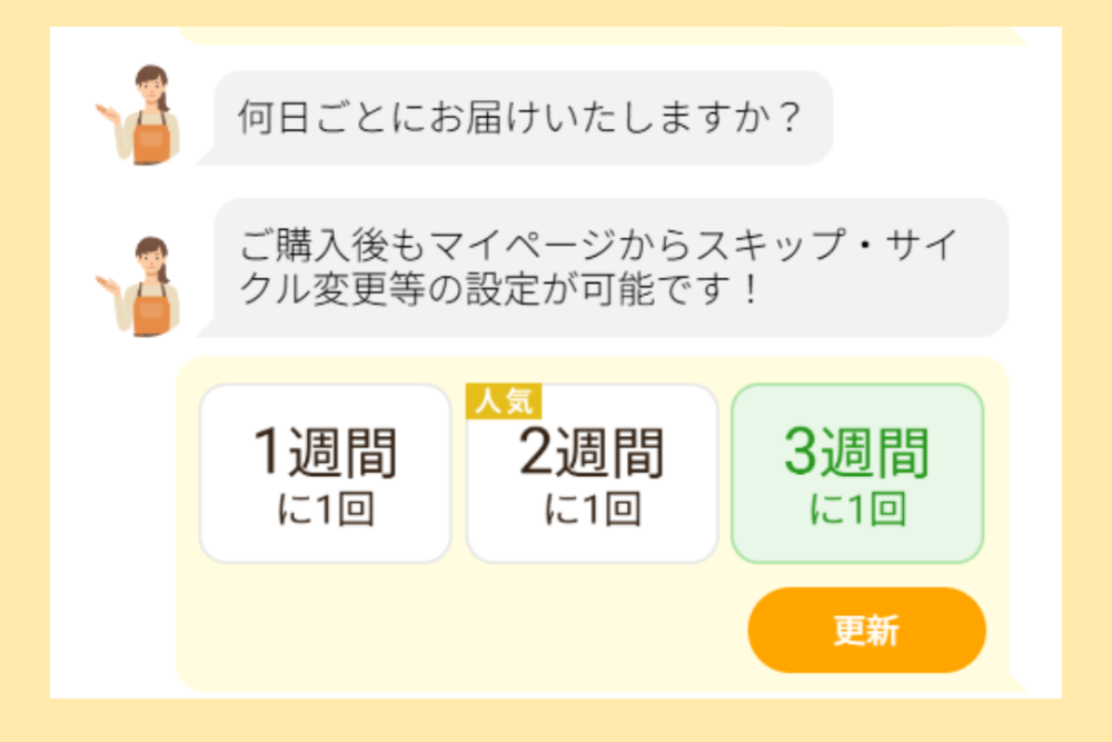 宅配サイクルを1週間毎~3週間毎の好きな間隔を選べます